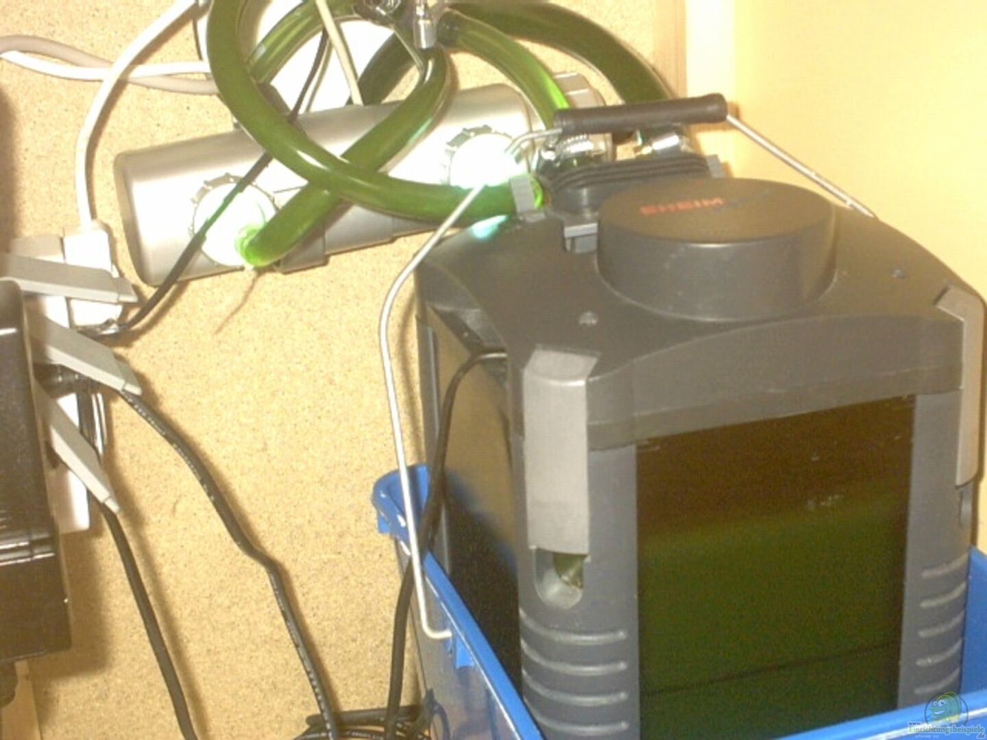 1 Schnellfilter Powerhead 1022 Liter/Std An dem Eheim Prof 2028 Filter ist ein UV-C Klärer als Byepass angeschlossen mit 9 Watt Leistung. 300 Watt Regelheizer der Firma Jäger