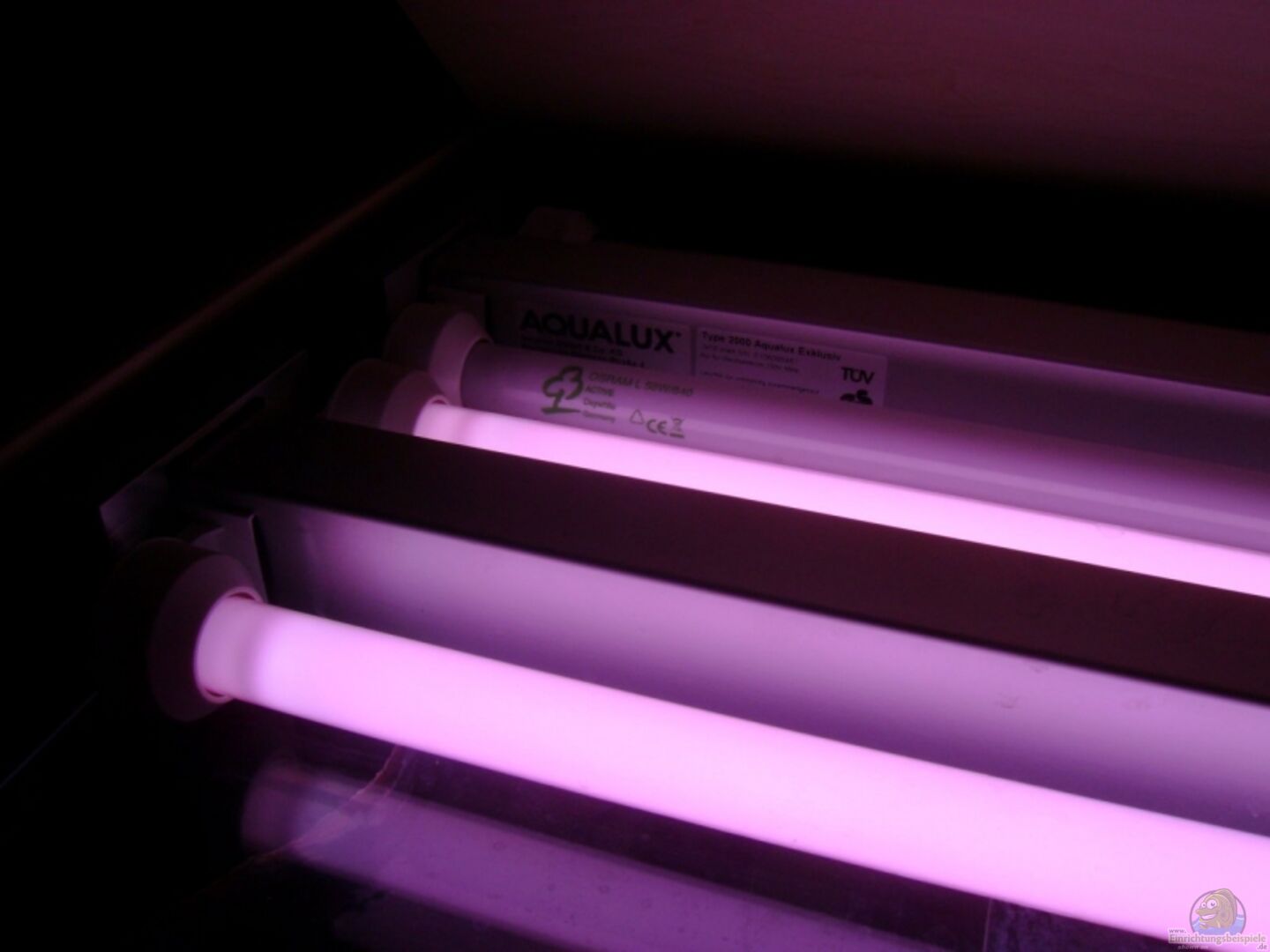 Filterzu-/abläufe sind soweit möglich in die Rückwand integriert. Da durch die Abdeckscheiben anscheinend zu wenig Sauerstoff ins Wasser kam, habe ich einen Diffusor angebracht.