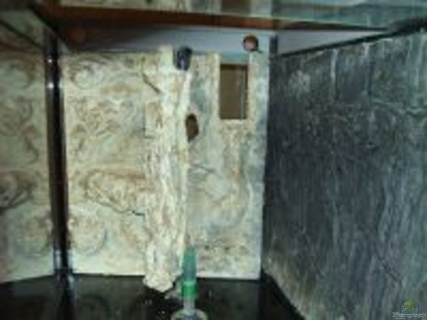 Hinter der seitlichen Rückwand ist noch eine Powerhead Pumpe SP 3800L eingebaut. An der Pumpe mit 25 Watt und einer Leistung von 2000l/h sind 2 Vorfilter, bestückt mit Filtervlies und Bio-Igeln, angeschlossen. Die volle Leistung der Pumpe wird nicht benötigt und ist etwas gedrosselt. Die Heizung ist ein 200 Watt Jäger-Heizstab der ebenfalls hinter der Rückwand sitzt. Hinter den Steinaufbauten ist noch ein Luftausströmerstein versteckt, der da so vor sich hin sprudelt. Gebraucht wird [...]
