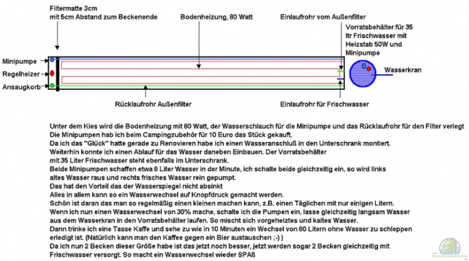 Bodenheizung 50 Watt CO2-Anlage mit Magnetventil (wird zusammen mit der Beleuchtung gesteuert) Heizstab 300 Watt Wasserwechsel geht jetzt auf Knopfdruck ;-), siehe weiter unten