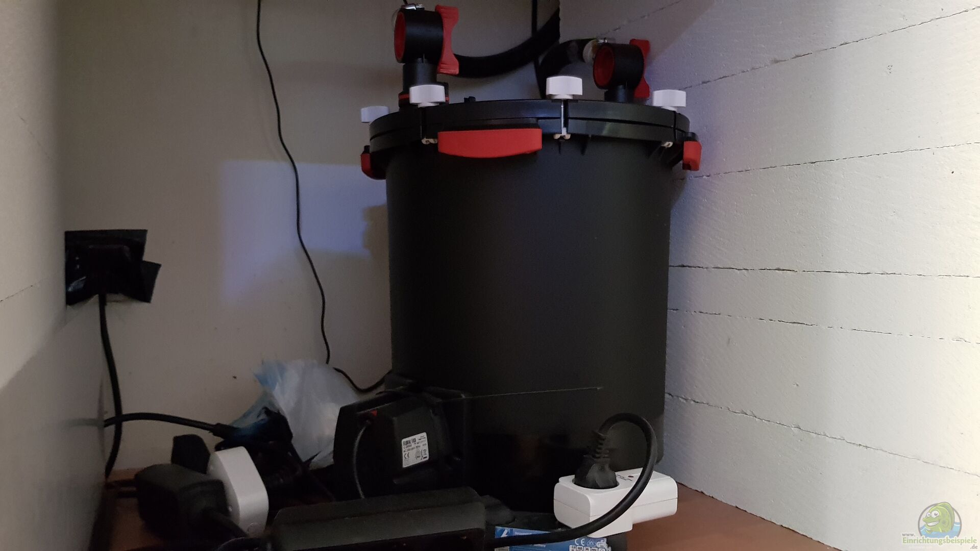 Eheim Heizstab 300 Watt (wurde mit Plastikwinkeln und Kabelbindern schwarz verkleidet, passend zur schwarzen Rückwand und der Verrohrung), Eheim 400 Luftpumpe - 400 l/h - 4 Watt, Strömungspumpe SunSun JVP-202AB mit Magnethalter - 12000l/h - 24W (läuft meist nur kurz damit die auch einmal Gas geben können, wäre auf Dauer natürlich purer Stress!), JBL Cooler 300 - 6 Ventilatoren - 15, 3 Watt und dazu JBL Cool Control, 2 Stück Tisch/Wandventilatoren von Honeywell mit je 40 Watt (zur [...]