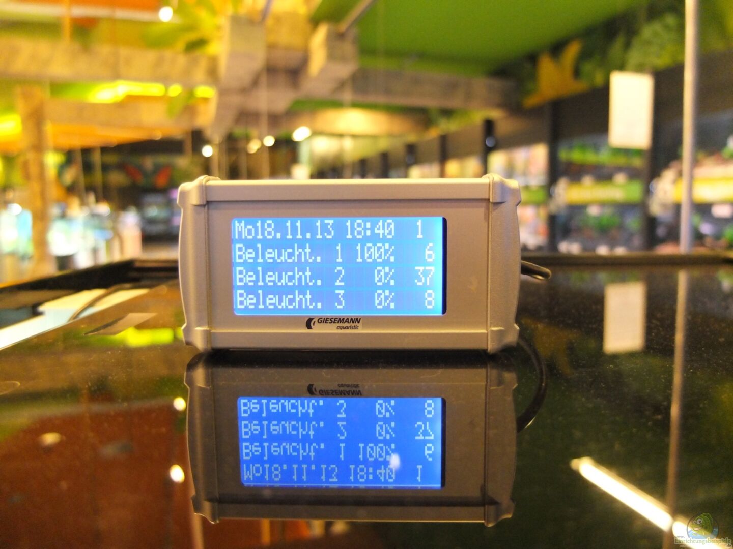 Dennerle CO2 Anlage mit Maxi Flipper Die CO2 -Anlage konnte ich leider nicht fotografieren. Es gab auch keine weiteren Angaben dazu am Becken, vermute aber stark, da?? es sich um eine Druckgasanlage handelt. Giesemann G-Tron Basic Der G-Tron Basic von Giesemann ist ein Aquariencomputer, der es ermöglicht alle wichtigen Aspekte des Aquariums zu messen, zu regeln und zu steuern. in Verbindung mit Messsonden und ein speziellen Schaltleiste lassen sich Beleuchtungsverläufe simulieren, [...]