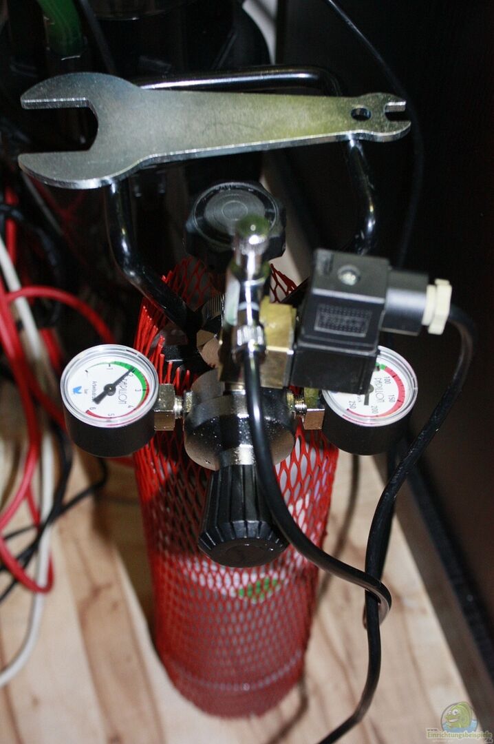 300 Watt Eheim Stabheizer 2KG Co2 Anlage mit Nadelventil, Magnetventil, Rückschlagventil und 1, 5 Liter Pet Flaschenreaktor betrieben mit einem Aussenfilter. Abschaltung mit Zeitschaltuhr 9.00 bis 22.00 Uhr PH Controller wurde entfernt da sich die Werte des PH immer um 7 rum bewegt, egal was ich am Aquarium auch versuche zu ändern.