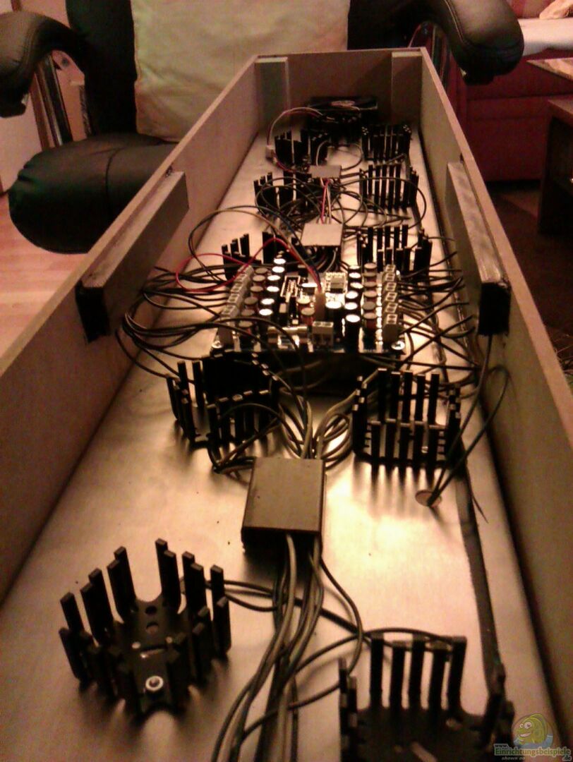 Geheizt wird über ein 100W und ein 300W Heizstab. Diese werden über eine HOBBY Biotherm Pro gesteuert. Wenn die 100W Heizung nicht reicht, schaltet sich automatisch die 300W Heizung zu. PH-Messgerät mit CO2 Flasche zur PH Kontrolle.