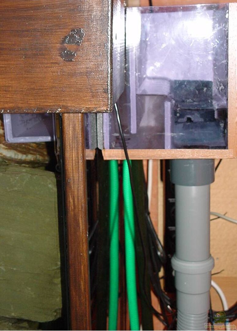 ------ 1x Jäger-Heizer 250 W (eingestellt auf 27 Grad)wird von der Aquacontrol geregelt ist im Filterbecken untergebracht ------ ein Aqua-Control Aquariencomputer AC 14 der die Temperatur konstant auf 25, 5 Grad am Tag und 25 Grad in der Nacht absenkt ------ HW UV-Wasserklärer 500 - 15 Watt ( Dauerbetrieb ) ------ Ozonisator Hailea HLO 100 mit eingebauten Kompressor und Digital geregelt ------ Beleuchtungsschaltung , PH-Wert Messung, Temperatur Messung , Pumpensteuerung über [...]