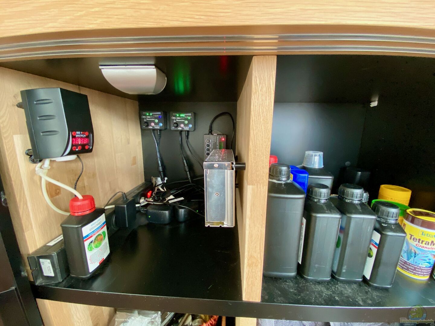 - Heizstab in der 3. Filterkammer elektronisch geregelt via Inkbird ITC-306T mit Nachtabsenkung von 26.5 auf 26°C - 2 Strömungspumpen Jebao Stream RW-4 - Sterilisator Chihiros Doctor 3 IN 1 - Dosierpumpe für EasyCarbo
