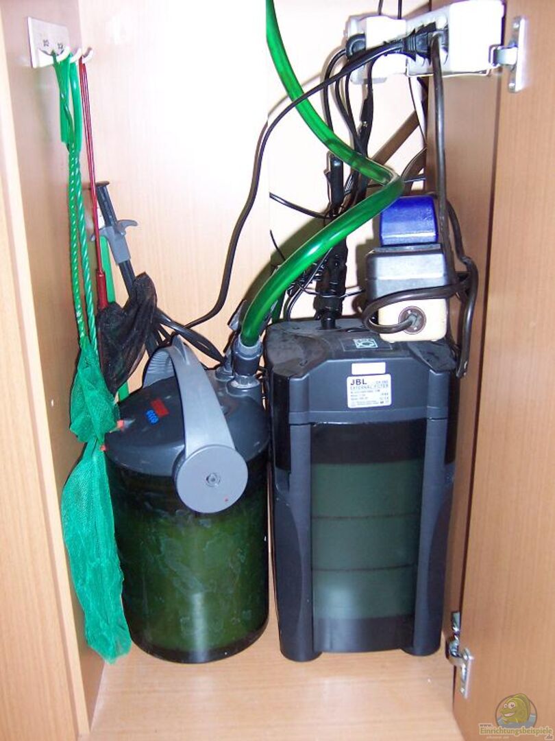 Strömungspumpe: Eheim Powerhead 1212 mit Filterschwamm als Schnellfilter 650 l/h Regelheizer 150 W Gesamtfilterleistung laut Hersteller: netto 1830 l/h