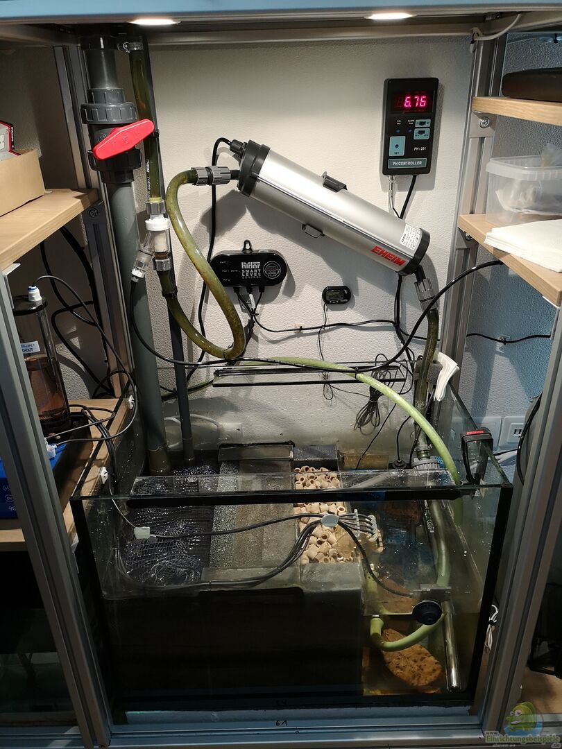 * Heizstab "Tetra HT 300 Watt" * Rückförderpumpe "Tunze silence" mit 3000 Liter/h (real ca. 1500 Liter/h) * Strömungspumpe "Eheim Powerhead aquaball" * UV-Klärer "Eheim Reeflex UV 800" * Luftausströmer "Eheim air pump 400" z. Zt. ausser Betrieb genommen * CO2 Anlage "US Aquaristik" 10 Kg mit Magnetventil * Direktdiffusor "JBL Atomizer" * PH Controller "Ph 201" zur Ansteuerung des Magnetventils * [...]