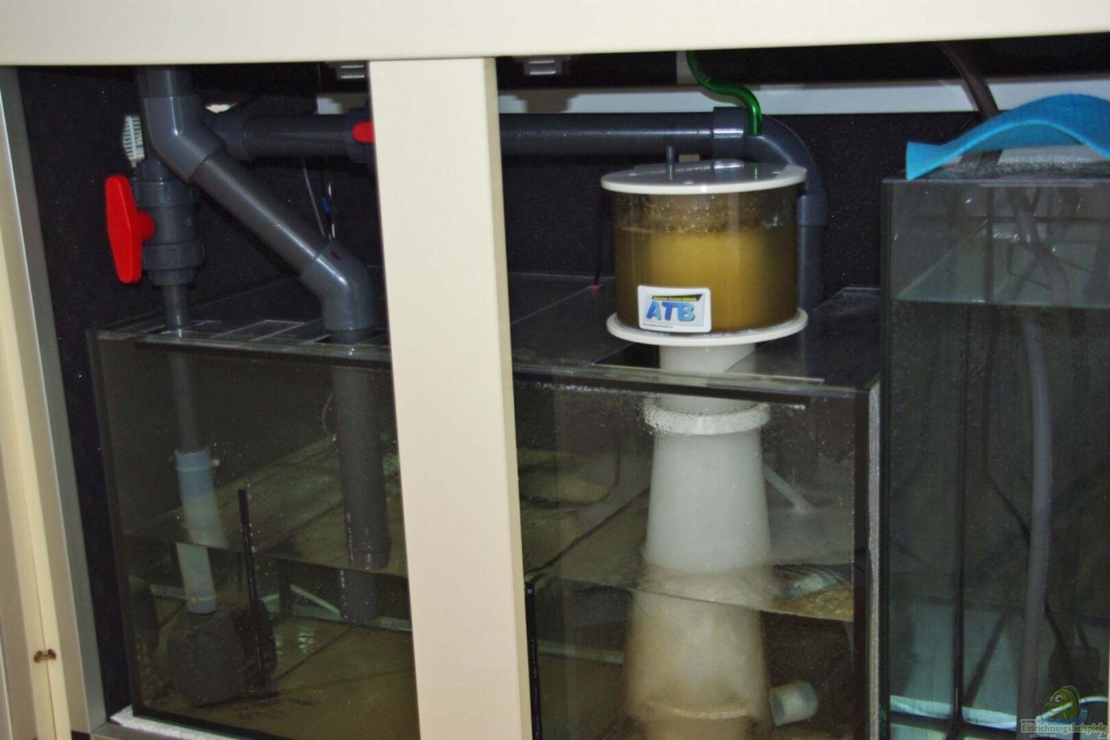 2x Tunze nanostream 6055 Rückförderpumpe Tunze silence 1073.020 GHL ProfiLux II Temperatursensor Niveausensor optisch pH-Sonde Eheim-Jäger Heizstab 200W Kühlung über 5-fach Lüfter (Eigenbau aus PC-Lüftern) Futterautomat von Grässlin, Rondomat 400