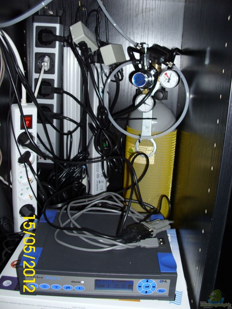 Eheim Jäger Regelheizer 200W Dupla Bodenkonvektor ( Bodenfluter ) ProfiLux II plus - Aquarium Computer Elektronische Temperatur und PH-Wert Messung Co2-Düngeanlage (Co2-Flasche) Kleine Eheimpumpe für Gewitterregen benutzt Aquarienwasser um Regen zu simulieren Gewitterblitze mit GHL-Simu-L Mp3-Player erzeugt Gewittergrollen und gibt es auf aktiv-Lautsprecher aus Das komplette Gewitter wird über den Profilux II plus gesteuert