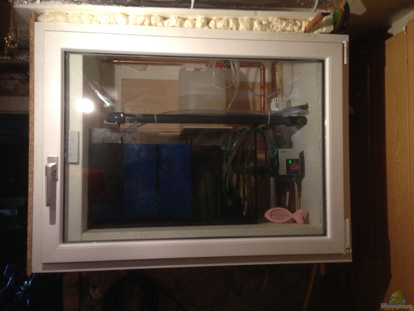 Das Aquarium wird über die Heizung des Hauses auf Temperatur gebracht. Da sich das Technikbecken im Heizungsraum befindet, hat sich diese Variante förmlich aufgezwungen. Für das Technikbecken wurde eine extra Heizungspumpe installiert, da die Pumpe der Hausheizung nicht immer in Betrieb ist. Im Technikbecken ist ein kleiner Wärmetauscher aus Edelstahl untergebracht der nach Bedarf mittels Heizungsthermostat mit Heizwasser versorgt wird. Der externe Fühler des Thermostats ist in der Klarwasserkammer [...]