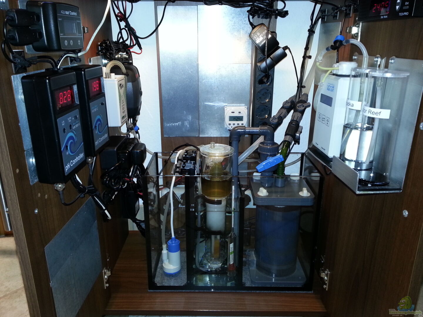 - 2 Strömungspumpen (Juwel Eccoflow 600, Leistung gesteigert mittels 1000er Impeller) 2x1000 Liter/Stunde - 1x Juwel Regelheizer 200W - Eigenbau Niveauregulierung - Sander Ozonisator Certizon C25 - Aqua Medic mV Controller - Aqua Medic pH Controller - Temperatursteuerung Lucky Reptile ThermoControl PRO II - Aqua Light Dosieranlage