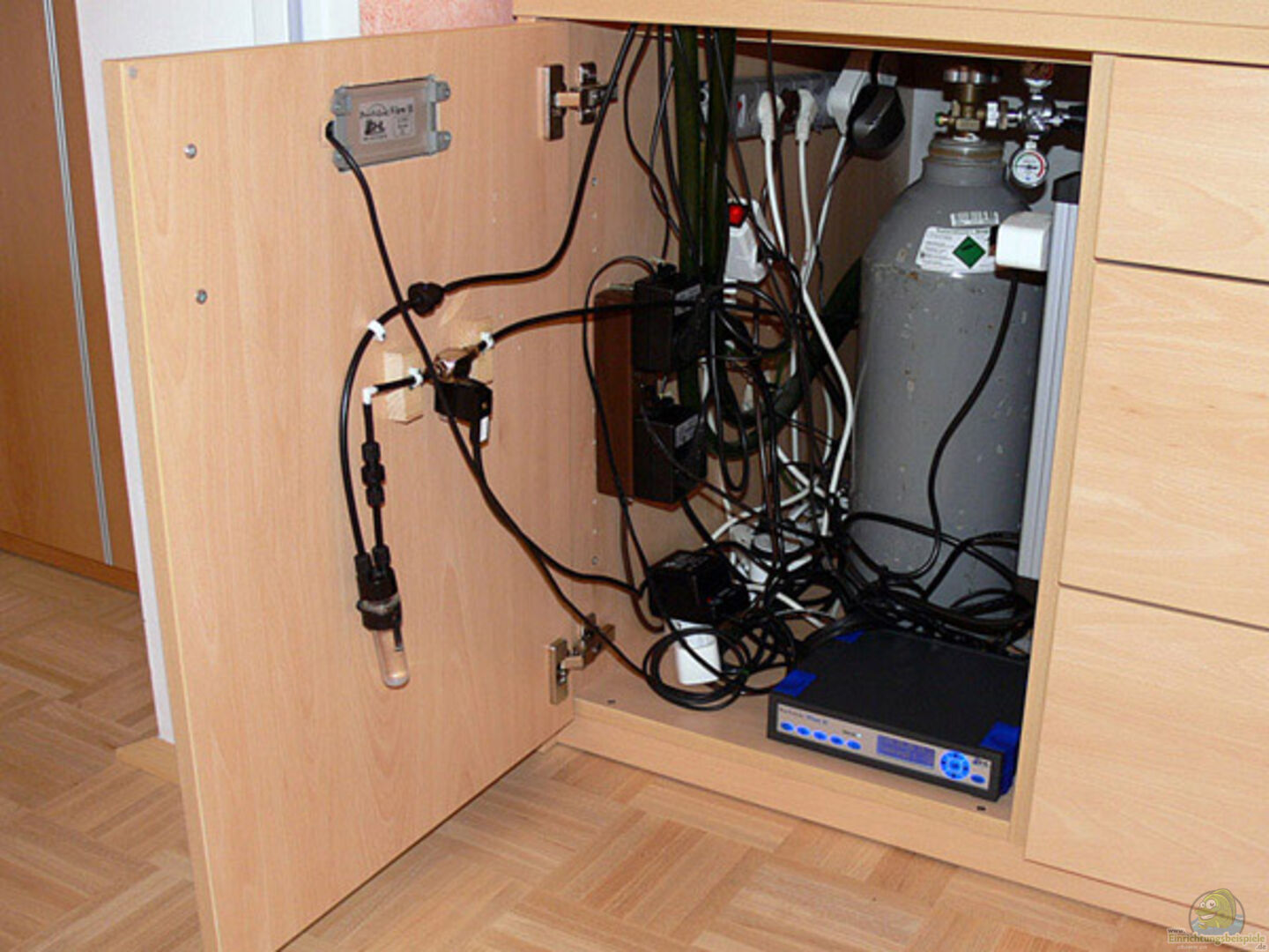 Die CO2-Anlage ist von Papillon. Geregelt wird mit dem Aquariumcomputer von GHL. Mit einer 10 kg CO2 Flasche. Das CO2 leite ich im Ansaugkorb über einen Keramik-Ausströmer (Zerstäuber) in den EHEIM 2026 Aussenfilter ein.
