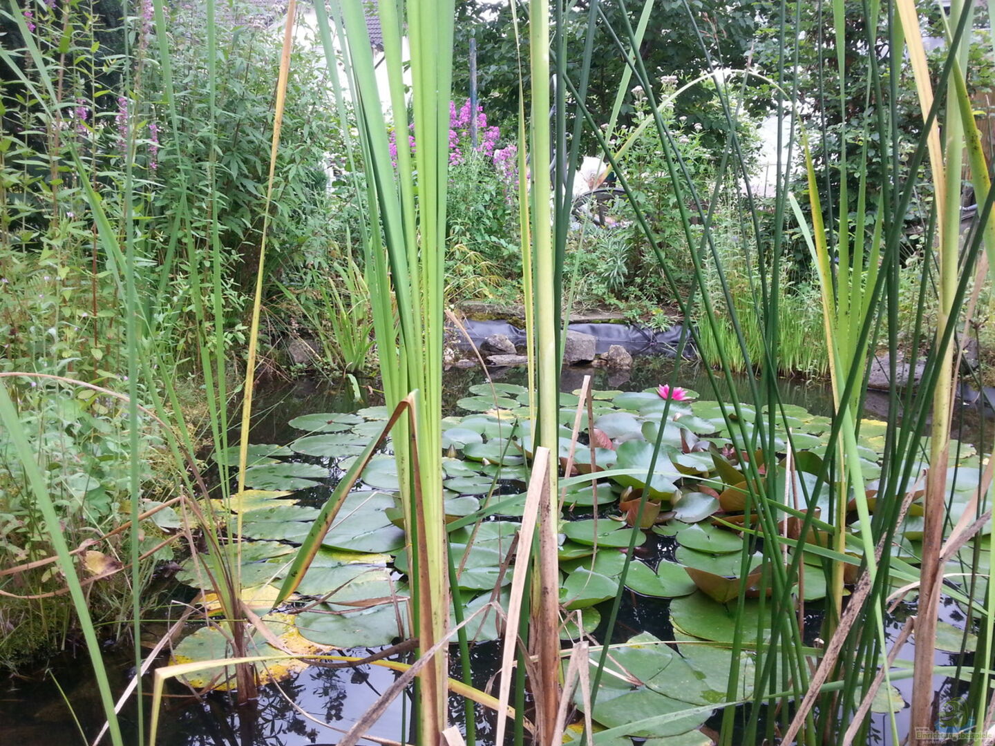 Bis auf den Rückschnitt der Pflanzen wird nichts am Teich gemacht. Alles wächst wo es wächst. Ein Gro??teil der Pflanzen hat sich ohnehin selbst gesät. Alle 8Jahre kommt der Schlamm aus dem Teich.
