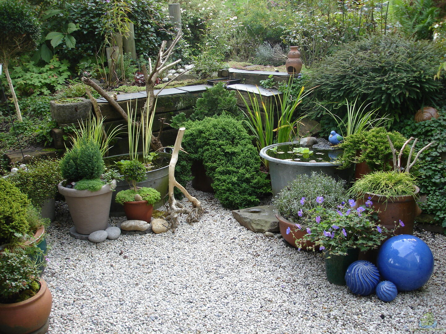 Terassenteich - eingemauert mit vorhandenen Bruchsteinen. An 2 Seiten Mauer, an weiteren 2 Seiten schlie??t das Beet an. Der Teich steht auf verdichtetem Wegebau mit kleiner Betonplatte dazwischen. Der Teich wurde auf den frischen Beton eingestellt und in Waage gebracht. Der Fertigteich ist von Heissner.