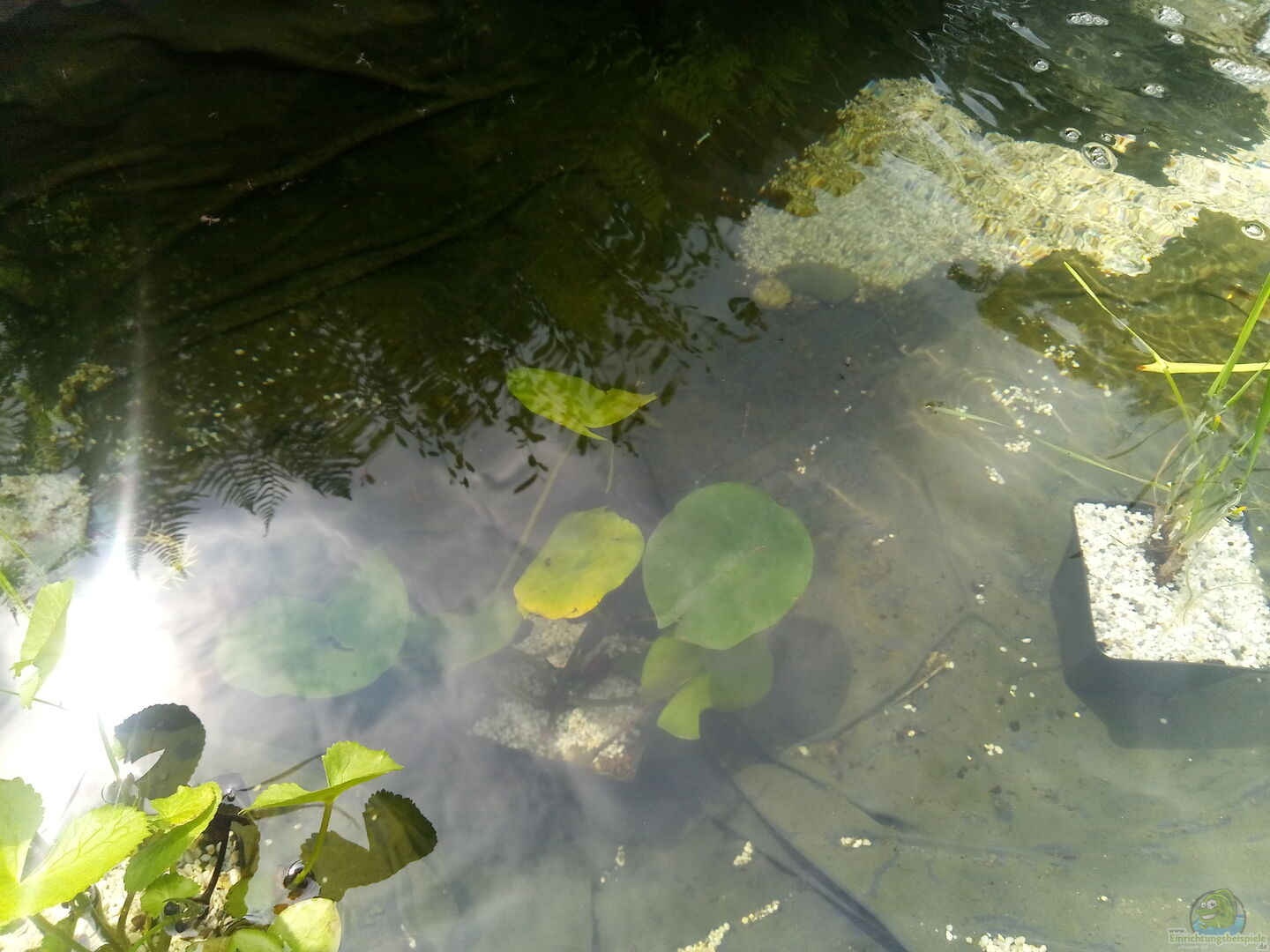 Folgende Pflanzen sind im Becken eingesetzt. Aquariumpflanzen Schwimmpflanze "Limnobium Laevigatum" Seerose "Nymphaea Attraction" Tannenwedel "Hippuris vulgaris" Korkenzieherbinse "Spiralis" "Juncus effusus" Buntgefärbte Houttuynia Chameleon "Houttuynia cordata" Gauklerblume "Mimulus luteus" Grote egelskop "Sparganium erectum Breitblättriger Rohrkolben "Typha latifolia" Buntes Glanzgras [...]
