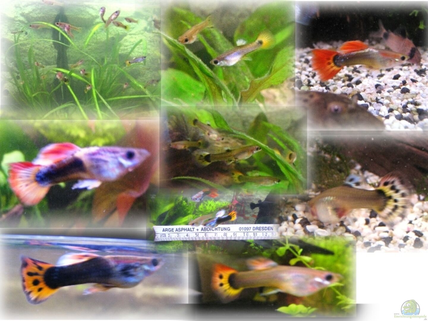 2 x Ancistrus sp. (1m/1w) / Antennenwels 6 x Corydoras Panda (vermutlich 3 m/3w) / Panda-Panzerwels 2 x Synodontis nigriventris (vermutlich Paar) / rückenschwimmender Kongowels 8 x Hyphessobrycon megalopterus (4 m/4 w) / Schwarzer Phantomsalmer 3 x Poecilia sphenops (1 m/2w) / Silbermolly 2 x Poecilia sphenops (2 w) / Black Molly 3 x Pseudocrenilabrus philander (1m/2w) / Kupfermaulbrüter; davon 1 w eigener Nachwuchs 14 x Poecilia reticulata (7m/7w) / Guppy; davon 13 eigene Nachzucht 1 [...]
