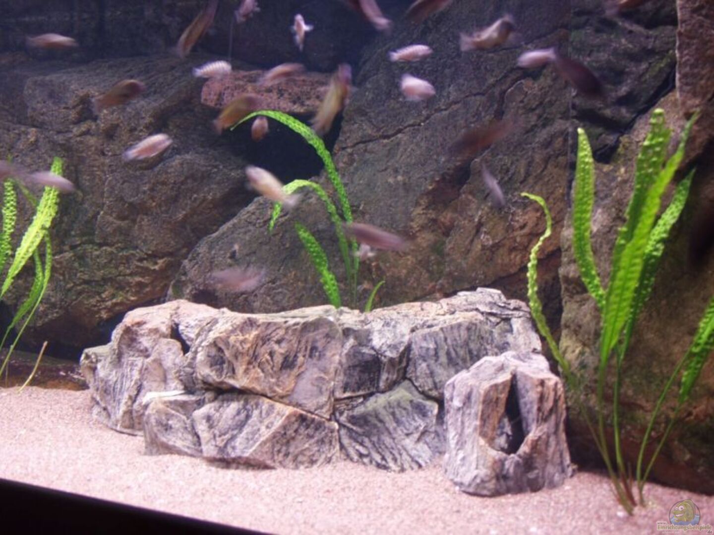 3 BacktoNature Module an der Rückwand und vor dem Biofilter rechts. Zusätzlich ein BacktoNature Filtermodul links. Der Vorbesitzer hatte die Rückwand und den Filter mit Juwel-Platten verkebt. Da das Becken bei mir in einer Nische steht, habe ich auch die Seiten noch mit Juwel-Platten beklebt. Die BacktoNature Module wurden auf diese Platten aufgeklebt. Die sich ergebenden Zwischenräume sind also innen schwarz und werden gerne als Unterstellmöglichkeit genutzt. Die im Vordergrund zu sehenden [...]
