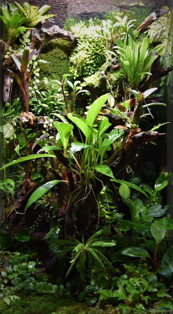 Die Rückwand besteht aus Xaximstückchen und Regenwaldsubstrat. Dies besteht aus einer Mischung aus Weisstorf und einem Kautschuk-Kleber
