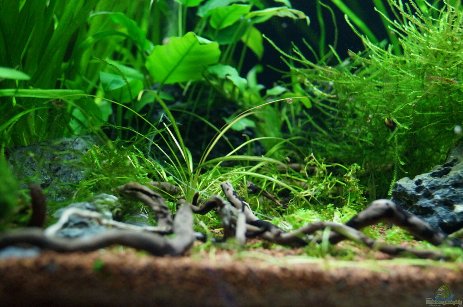 -Standard Glasbecken mit schwarzen Silikonnähten und Auflagen für Abdeckscheiben. -Die geteilte Abdeckung ist eine Eigenanfertigung aus Plexiglas -Schwarze Rückwandfolie