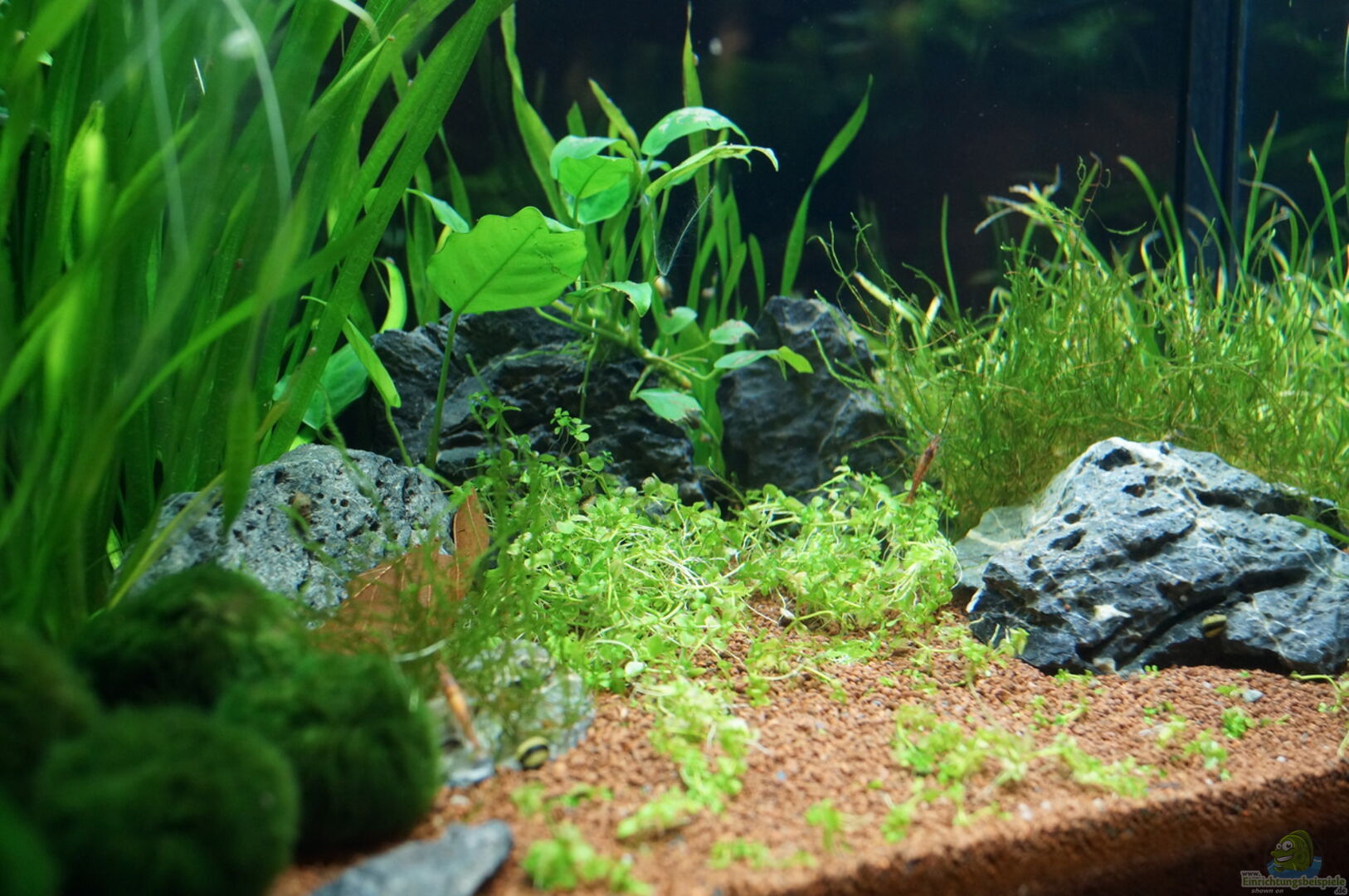 -Standard Glasbecken mit schwarzen Silikonnähten und Auflagen für Abdeckscheiben. -Die geteilte Abdeckung ist eine Eigenanfertigung aus Plexiglas -Schwarze Rückwandfolie