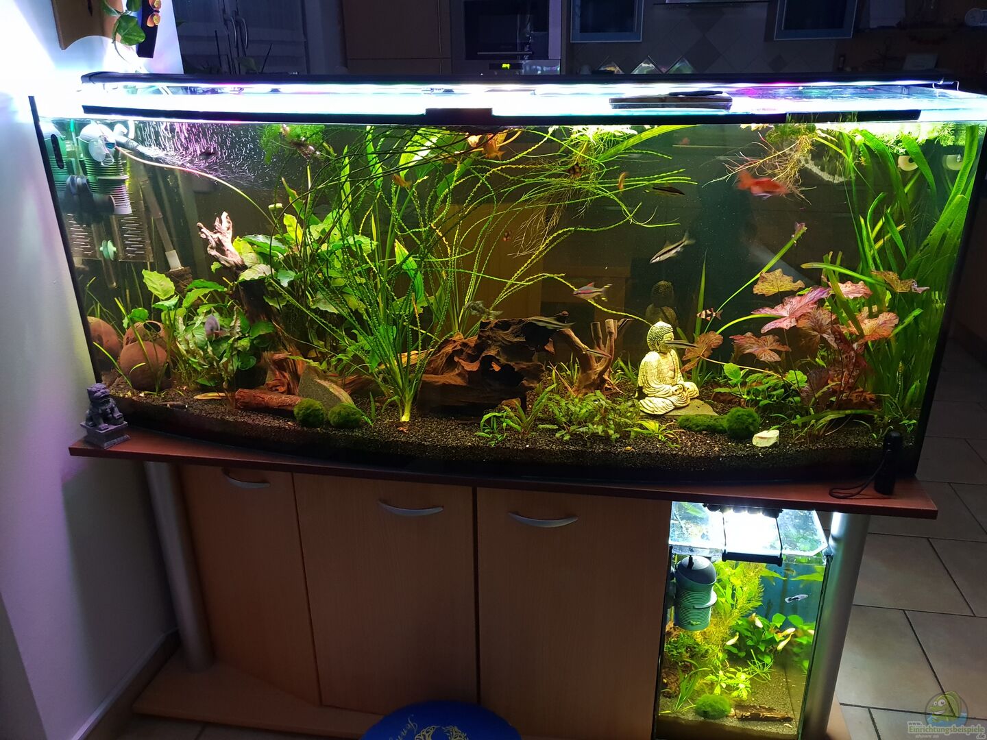 Raumteiler Küche/Wohnzimmer, Unterbau Massivholz Konstruktion mit Beschichtet 19mm Buche Dekorplatten verkleidet, halbe Rückwand mit Linoleum Boden Steingrau verblendet, alles Selbstgebaut, darunter Platz für Technik, Filter und Zubehör. Das ganze Becken liegt auf 2.8mm Lärchenbretter darüber 19mm Deckplatte Buche Dekor Das Aquarium ist mit 4 angefertigten Glasplatten abgedeckt Der Led Alubalken von Amazone ist Preislich unschlagbar! Wir wünschen Euch viel Erfolg bei Eurem eigenen [...]