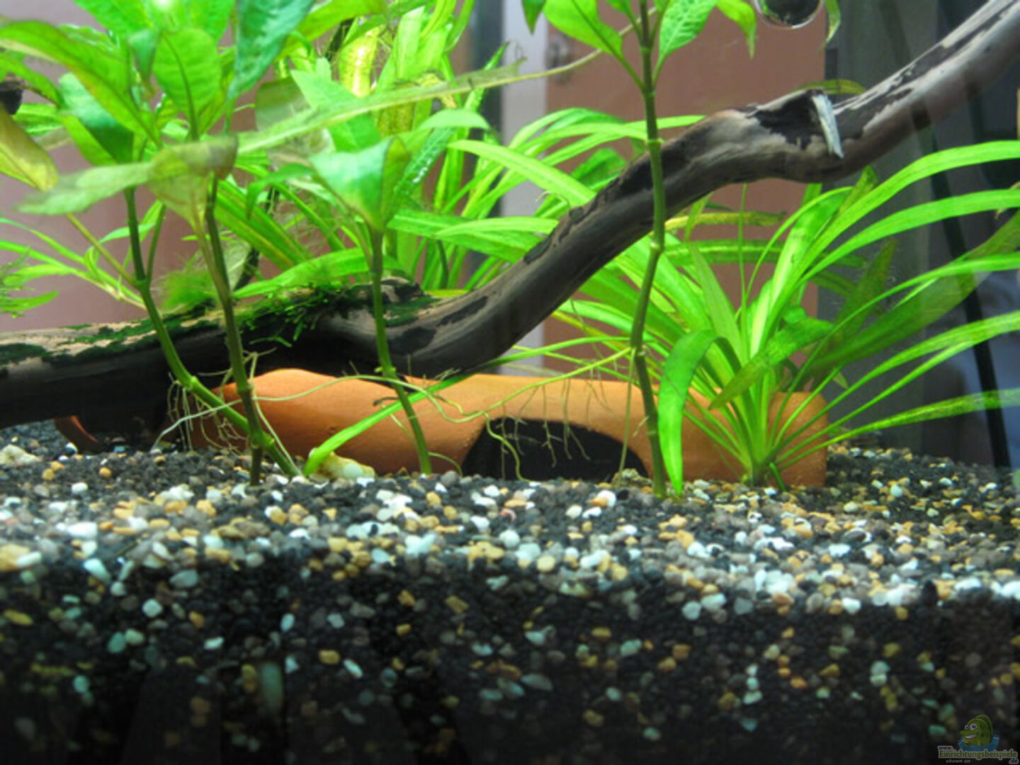 1 x Holzwurzel (Heimat der Zwergkrallenfrösche) 2 x Steine mit Bohrungen 1 x Tonröhre (Laichplatz der Antennenwelse) 1 x Tonkuppel (Laichplatz der Kakadu-Zwergbuntbarsche) 1 x Mini-Tonblumentopf (Rückzugsplatz für die Zwegkrallenfrösche)