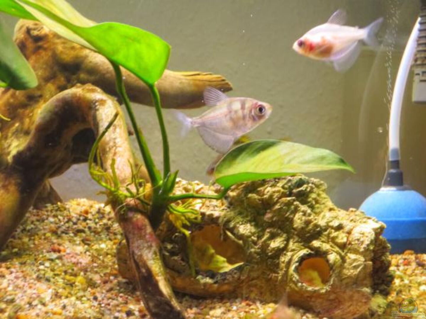 -Puntius sp. /Odessabarbe (6 m, 1 w) -Paracheirodon axelrodi /Roter Neon (1x) -Gymnocorymbus ternetzi /Trauermantelsalmler (3x schwarz, 1x hell) -Trigonostigma hengeli /Hengels Keilfleckbärbling (5x) -Barbus tetrazona /Sumatrabarbe ???grün??? (Moosbarbe)