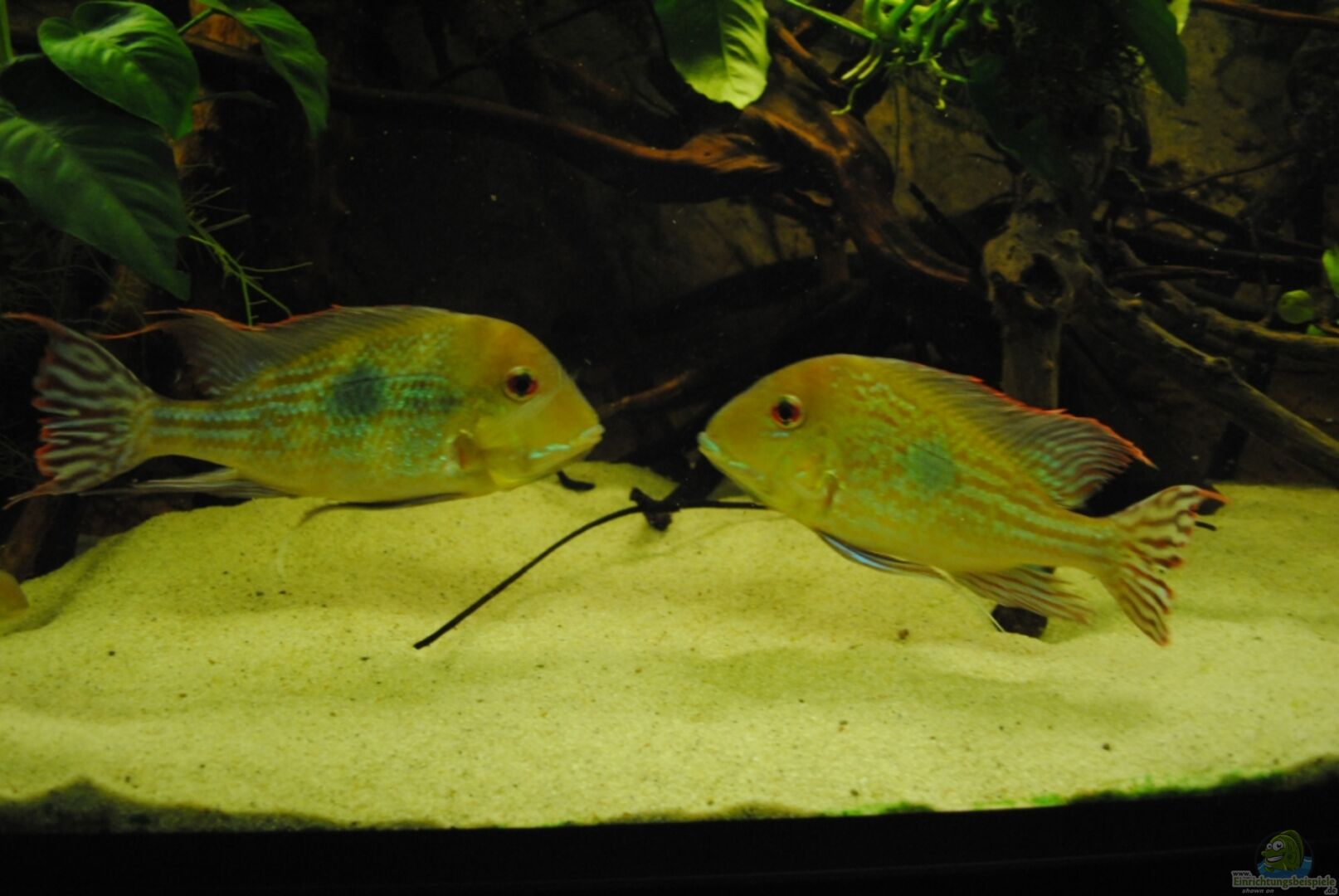 - 4 Geophagus megasema (wahrscheinlich 2/2; 17-24 cm) Quelle: ajot (geophagus.org) Erstbeschreibung:Heckel, 1840 wissenschaftlicher Name:Geophagus magasema Namensbedeutung:´megasema´ = mit gro??en Fleck weitere Bezeichnungen:- Herkunft/Fundorte:Rio Gaupore, Rio Urupa, Rio San Martin typische Merkmale:gro??er, runder Lateralfleck, ohne Kiemendeckelstrich Grö??e:bis ca. 23cm Fortpflanzung:larvophile Maulbrüter Bemerkungen:aquaristisch wenig bekannt. Eigene Beobachtungen: [...]