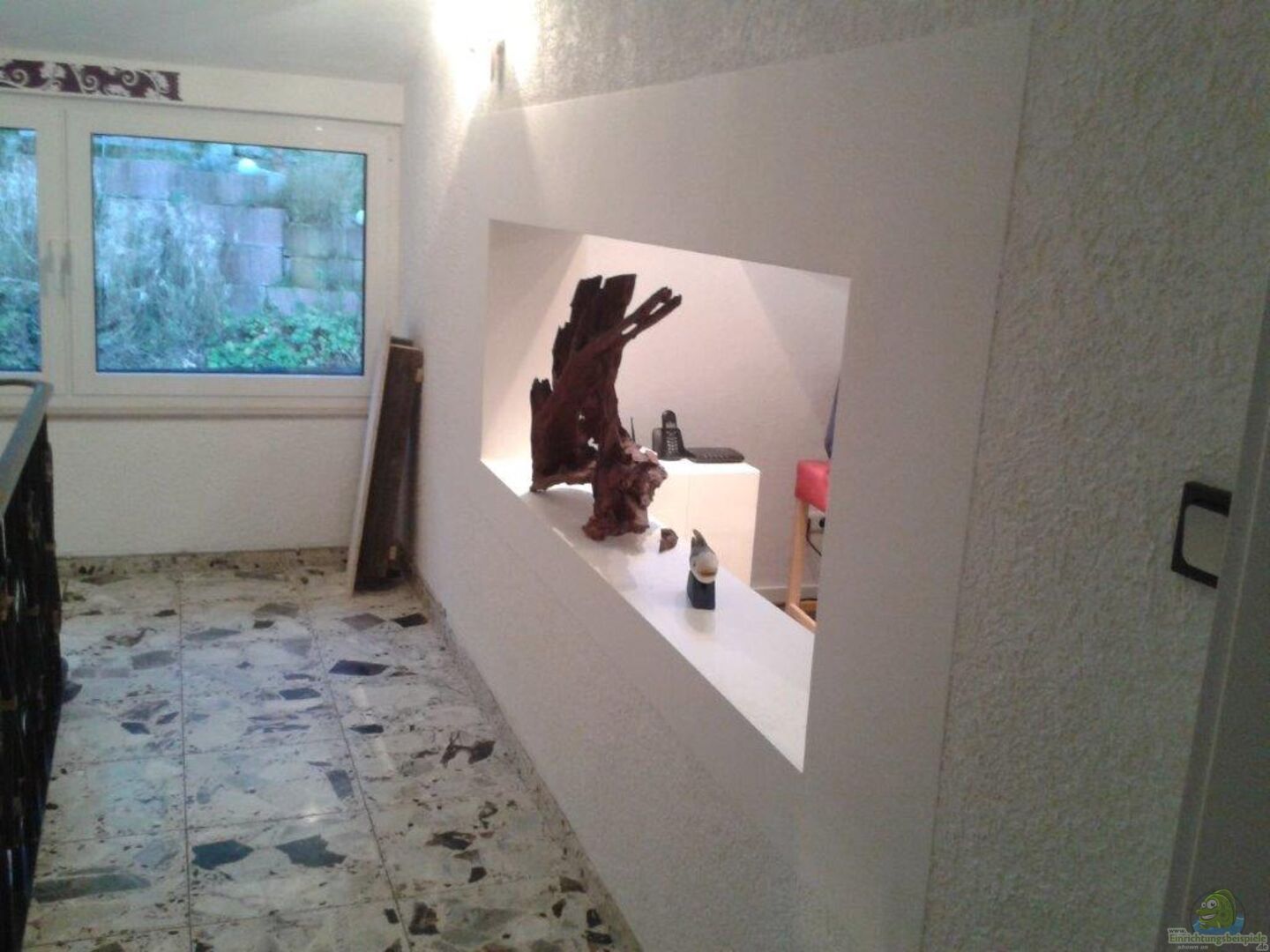 Einbauaquarium in einer Wand zwischen Küche und Treppenhaus, beidseitig einsehbar Das Aquarium liegt je zur Hälfte auf dem Unterschrank (Küchenseite) und dem Mauerdurchbruch auf. Es schlie??t zum Treppenhaus bündig mit der Wand ab und steht auf der anderen Seite in die Küche ca. 30 cm in den Raum hinein. Vor dem Wanddurchbruch (Hohlblocksteine) wurde zuerst einseitig das erste Sturzprofil (Doppel-T- bzw. I-Träger) in die Wand eingebracht, danach dass Gleiche auf der anderen Seite. Erst [...]