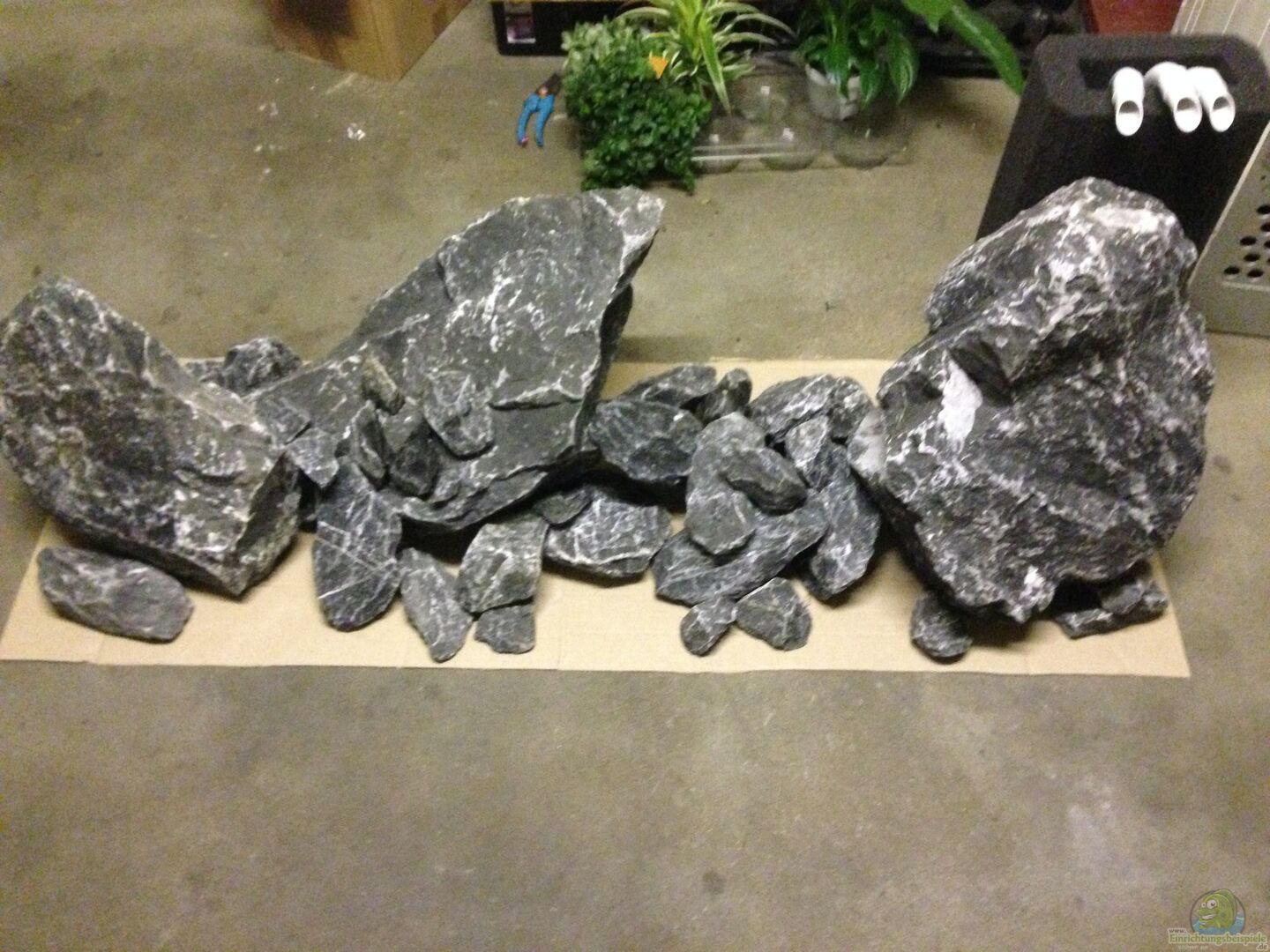 Plan: Eigenbau Steine aus Neopor, Flie??enkleber und Abtönfarbe versiegelt mit Epoxidharz von Breddemann! Ergebnis: Warsteiner Steine mit einem Gewicht von ca. 200 Kg 3 Fundament Punkte mit gro??en Steinen Links: 23 kg (ca. 30cm x 35cm) Mitte: 54kg (ca. 60cm x 30cm) Rechts: 72 Kg (ca. 60cm x 35cm)