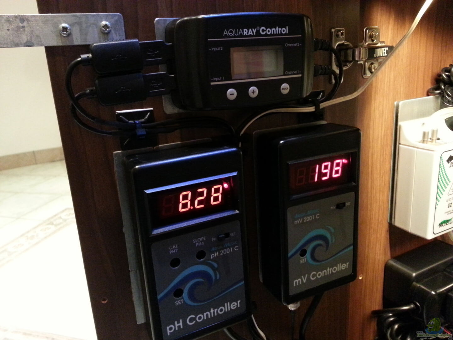 - 2 Strömungspumpen (Juwel Eccoflow 600, Leistung gesteigert mittels 1000er Impeller) 2x1000 Liter/Stunde - 1x Juwel Regelheizer 200W - Eigenbau Niveauregulierung - Sander Ozonisator Certizon C25 - Aqua Medic mV Controller - Aqua Medic pH Controller - Temperatursteuerung Lucky Reptile ThermoControl PRO II - Aqua Light Dosieranlage