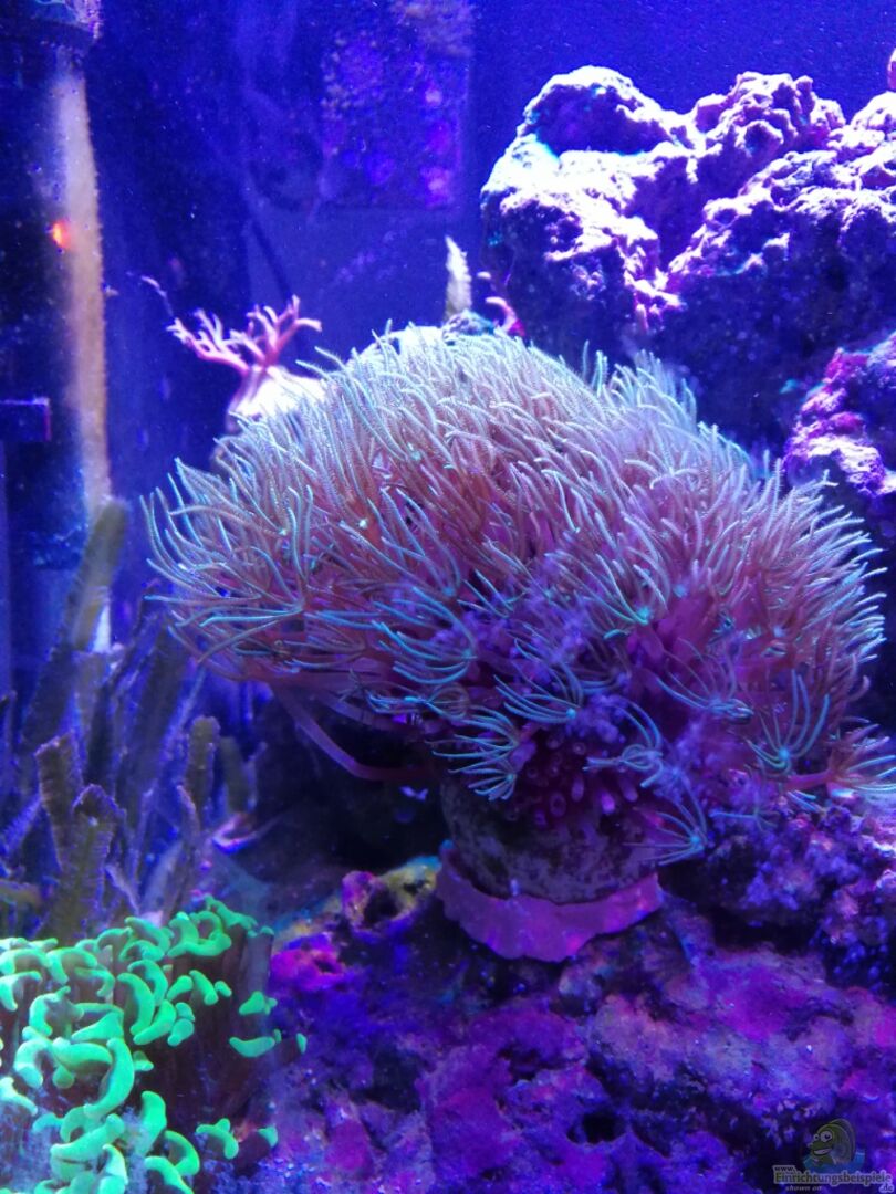 Tiere: 2x Einsiedlerkrebse 3x Schnecken 1x Röhrenwurm 1x Goldstirnschläfergrundel Korallen: -Pachyclavularia violacea -Euphylia ancora -Tubipora musica -Seriotopora caliendrum -Seriopora hystrix -Acropora sp. -Krustenanemone/Zoanthus -Stylophora "Milka" -Parazoanthus gelb Algen: -rote Alge - Aus dem LG: 1x Rundkrabbe -versch. Anemonen -Ohrschnecken -Schlangenseesterne