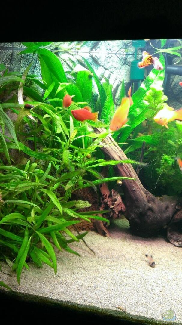 Bei dem Becken handelt es sich um ein bei eBay-Kleinanzeigen erworbenes und restauriertes Juwel Delta 80 in schwarzer Optik mit passendem Unterschrank. Die fehlende Einlegeplatte wurde von mir durch eine zugeschnittene 15mm Spanplatte ersetzt, sowie die ursprüngliche T8-Einsatzleuchte durch eine Juwel High-Lite T5 Einsatzleuchte ausgetauscht.