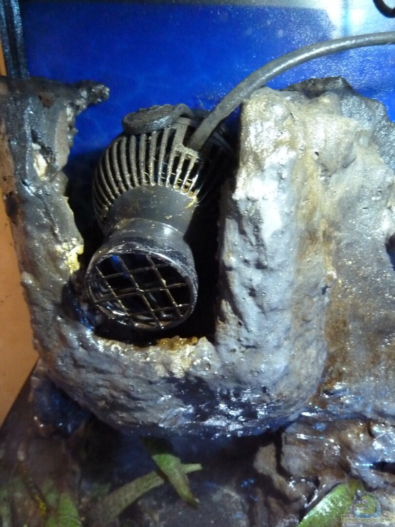Strömungspumpe Tunze 6045 für Becken von 40-500 Liter: 5-7 Watt Wurde in die linke Felsrückwand integriert. Sie wird während der Beleuchtungsdauer über Zeitschaltuhr mehrmals am Tag für 30 min angesteuert. Regelheizstab Fa. Jaeger 125 W für Becken bis 200l