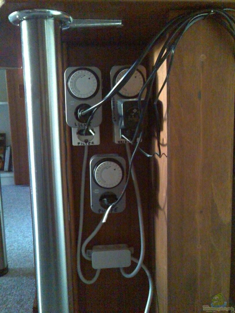 Ein Mp 1200 Maxi-Jet Power head mit 1100 Liter/h. und Diffusor, sorgt von 6.00 Uhr bis 22.30 Uhr für ´Bewegung´. Ein Tetra Heizstab mit 300 Watt für die richtige Temperatur.