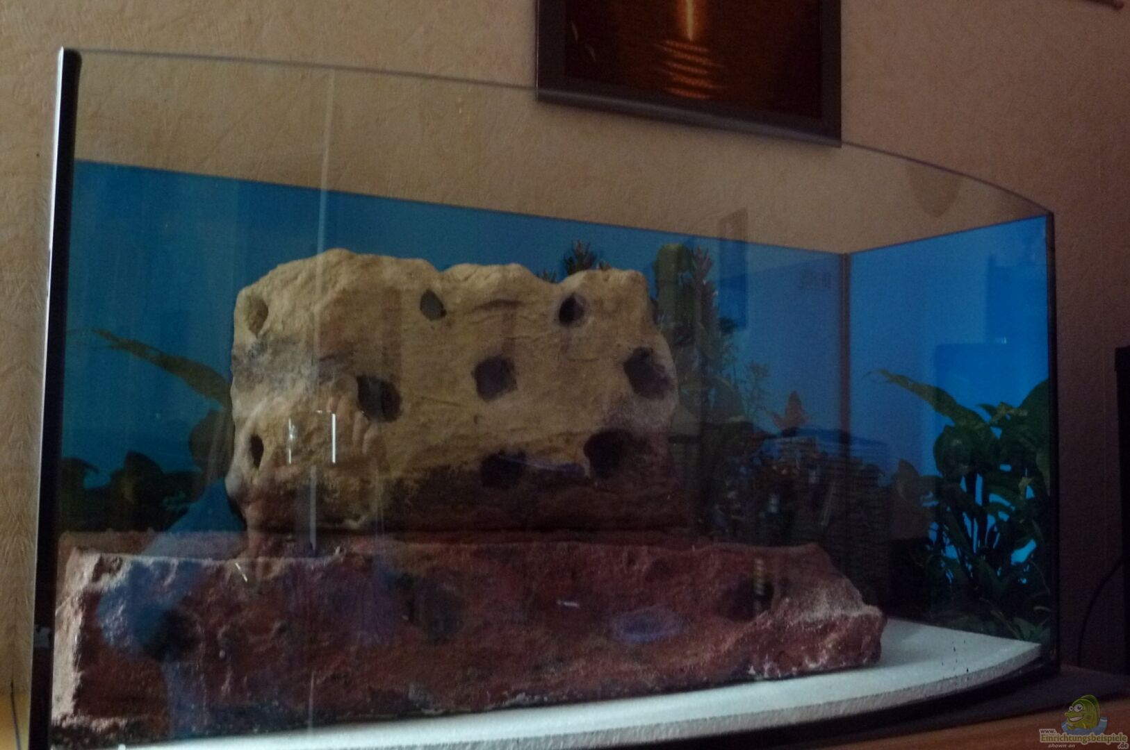 Aquael-Becken mit gewölbter Frontscheibe. Achtung ! Wir Malawis sind schon im Juni bei bester Gesundheit umgezogen !
