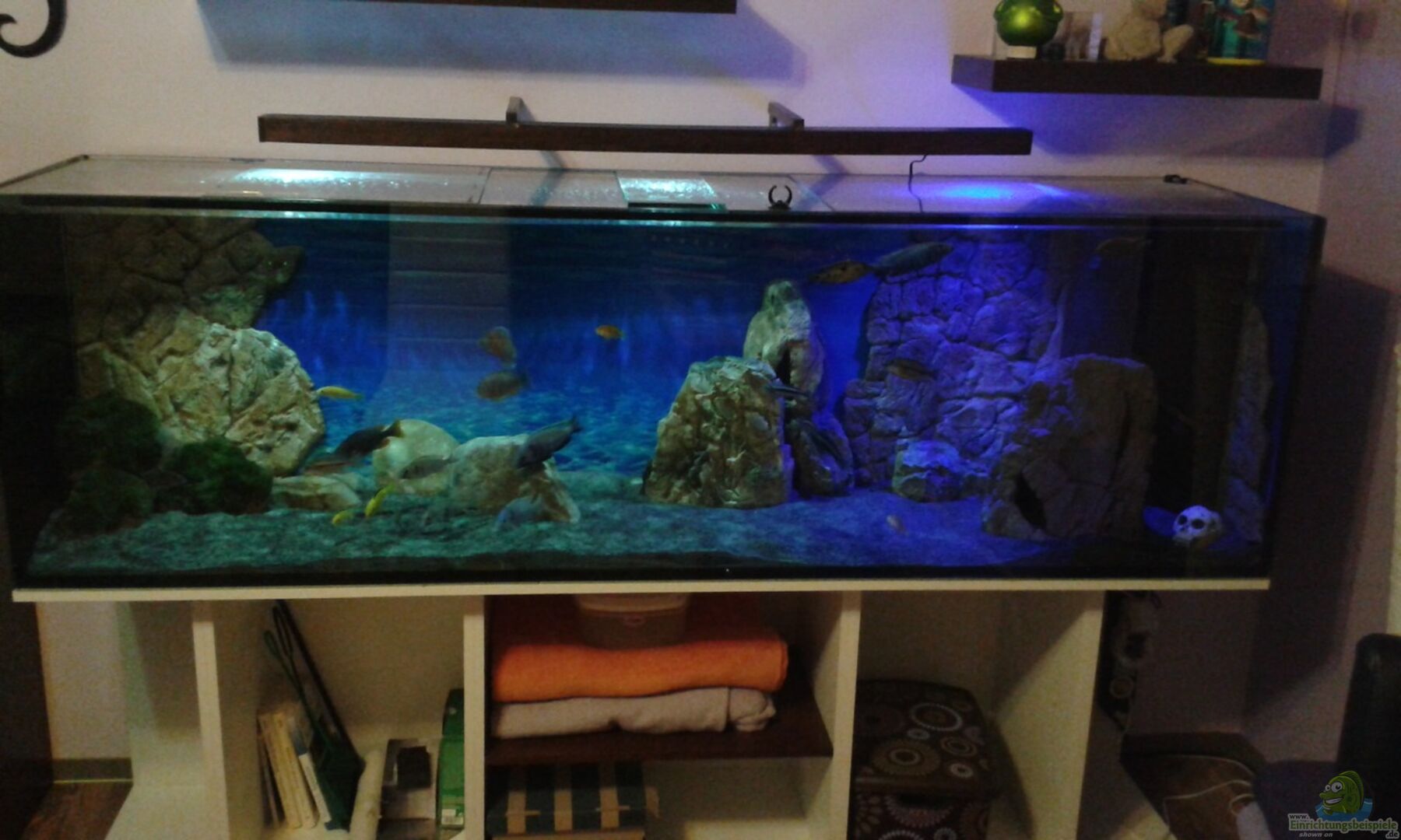 Aquarium ist von Fa. Friedberg, habe ich online ersteigert. Unterschrank ist selbstgebaut, 12mm Möbelplatten, jeweils doppelt gesetzt. In diesem Aqua waren beim Vorbesitzer Schildkröten, die entsprechende Insel wurde rausgetrennt, zum Glück befinden sich keine gro??en Kratzer im Glas.