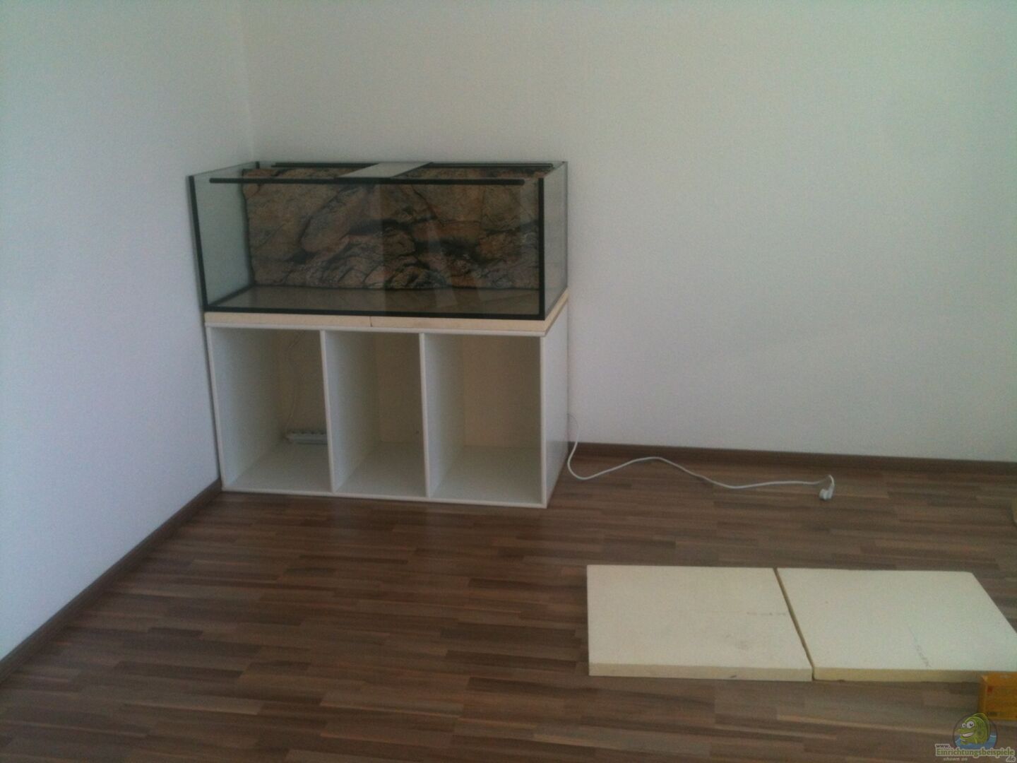 - Sonderma?? 130x60x50 cm, Sto??verklebt - das Becken steht auf einem selbstgebauten Unterschrank - zwischen Holz und Glas liegt eine 5cm starke Styrodurplatte