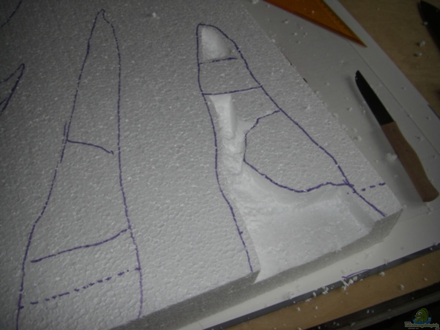Selbstgebaute Rück- und Seitenwand. 5 cm dicke Styroporplatten wurden im ersten Arbeitschritt auf die passenden Ma??e zurechtgeschnitten, im nächsten Schritt das Design mit Filzstift grob markiert. Danach wurden die Vertiefungen herausgeschnitten und gekratzt (sehr mühsame und viele statisch aufgeladene Styroporbröckchen verursachende Arbeit). Die groben und noch sehr unnatürlich wirkenden Formen wurde durch Bearbeiten mit einem Hei??luftfön etwas geglättet und vertieft. Neben der Rückseite [...]