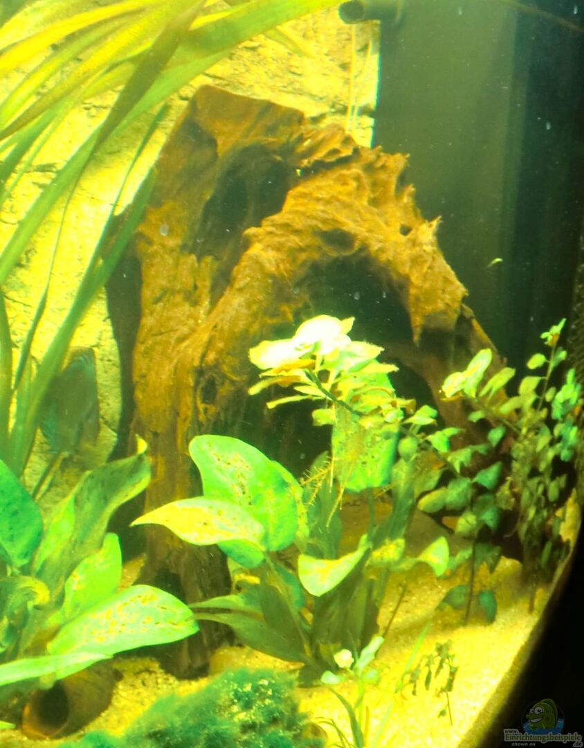 Im Becken befinden sich insgesamt 3 Wurzeln, wovon 2 Wurzel recht gro?? und so angeordnet sind, dass sich die Diskusfische zurückziehen können. Die Diskus können zudem zwischen den Valisnerien und in der "aponogeton ulvaceus" nach Schutz suchen ... Des Weiteren existieren mehrere Welshöhlen. (derzeit keine Welse ausser L27 und den Corys ...) Und es gibt noch eine Kokosnusshalbschale ....