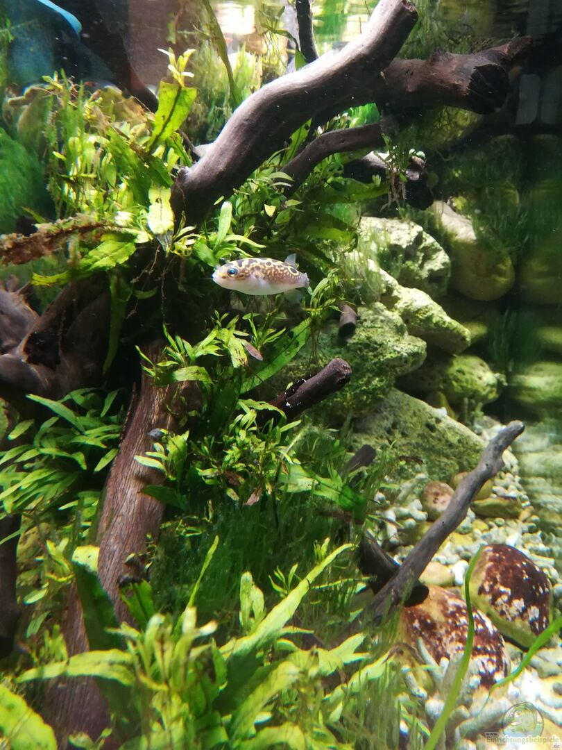 Das Becken ist ein reines Art-Aquarium, mit 2 Kugelfischen (Tedradon Biocellatus). Die Fische sind untereinander sehr friedlich, keine Spur von Aggression (was bei Kugelfischen allgemein eher selten ist) !