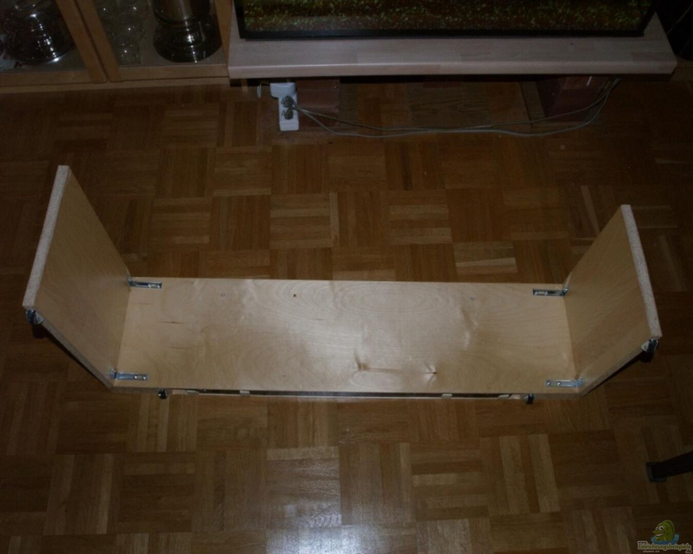 10 mm Glas mit Sto??verklebung, Isomatte als Beckenauflage Das Becken ist umrahmt von 2 Ikea Billy Regalschränken: links ein 80cm Vitrinenschrank, rechts ein ´offener´ 60cm Regalschrank. Zwischen den beiden Regalen ist 110cm Platz. Diesen habe ich mit 3 110cm ´Lack´ Regalen auf im oberen Bereich ´überbrückt´. Der untere Bereich ist für das Aquarium reserviert. Dieses steht auf 3 Ziegeldoppelsäulen (12 Standardziegeln) und einer 5cm Arbeitsplatte im passenden Buchenton. Als Verblendung [...]