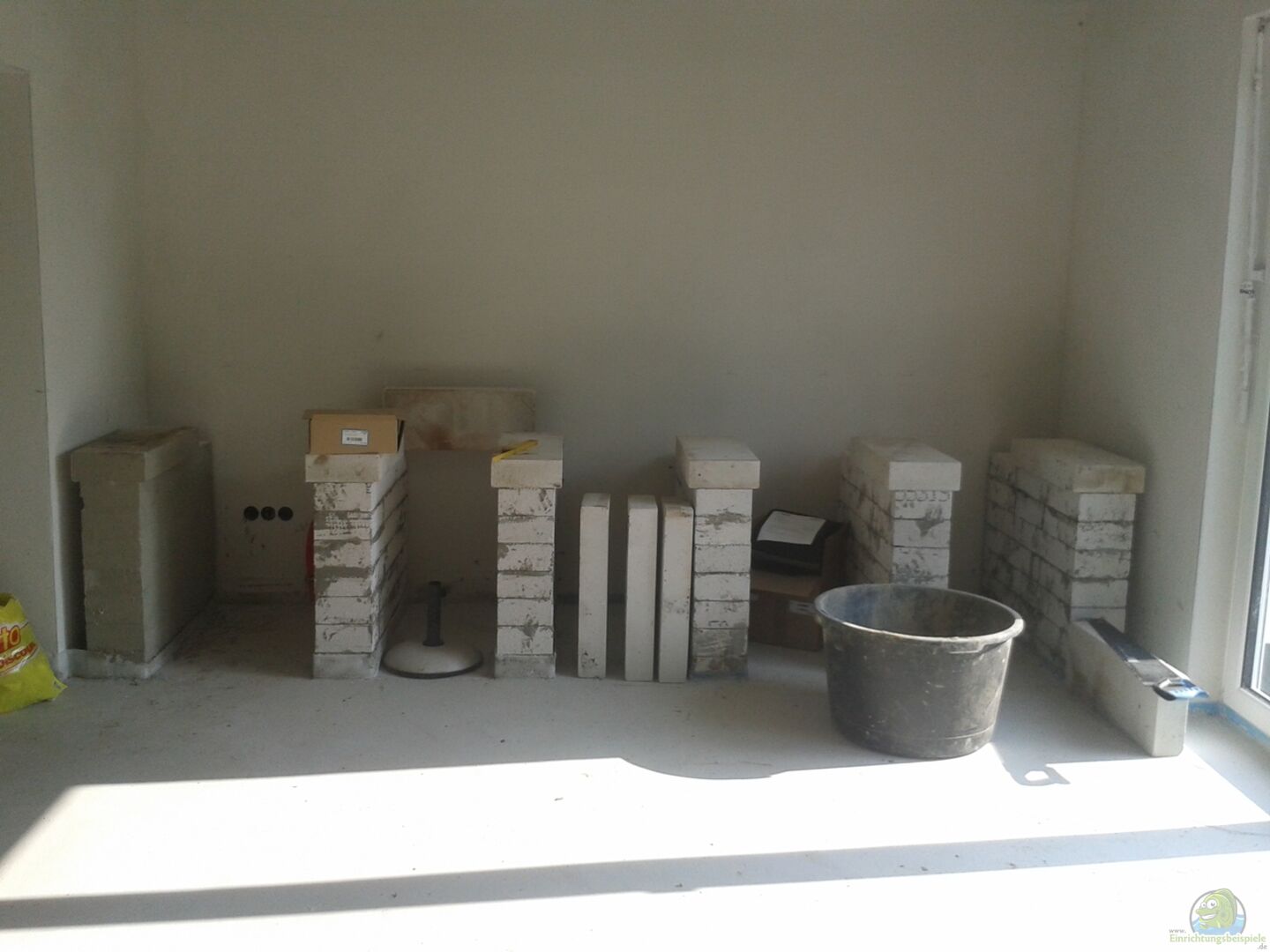 Geplant ist ein gro??es Becken, welches meine Wohnzimmerwand komplett einnehmen soll. Das Becken wird vorraussichtlich von Boros in 15mm Glasstärke gebaut und mit entsprechenden Bohrungen für die Wasseranschlüsse versehen. Der Unterbau ist aus Ytong-Steinen entstanden, so dass das Becken auf sechs Säulen ruhen wird. Diese sind direkt auf die Bodenplatte geklebt, mit dem Estrich umgossen und mit der Fussbodenheizung "umlegt". Zwischen Säulen und Becken kommt eine Feuchtraum Spanplatte [...]