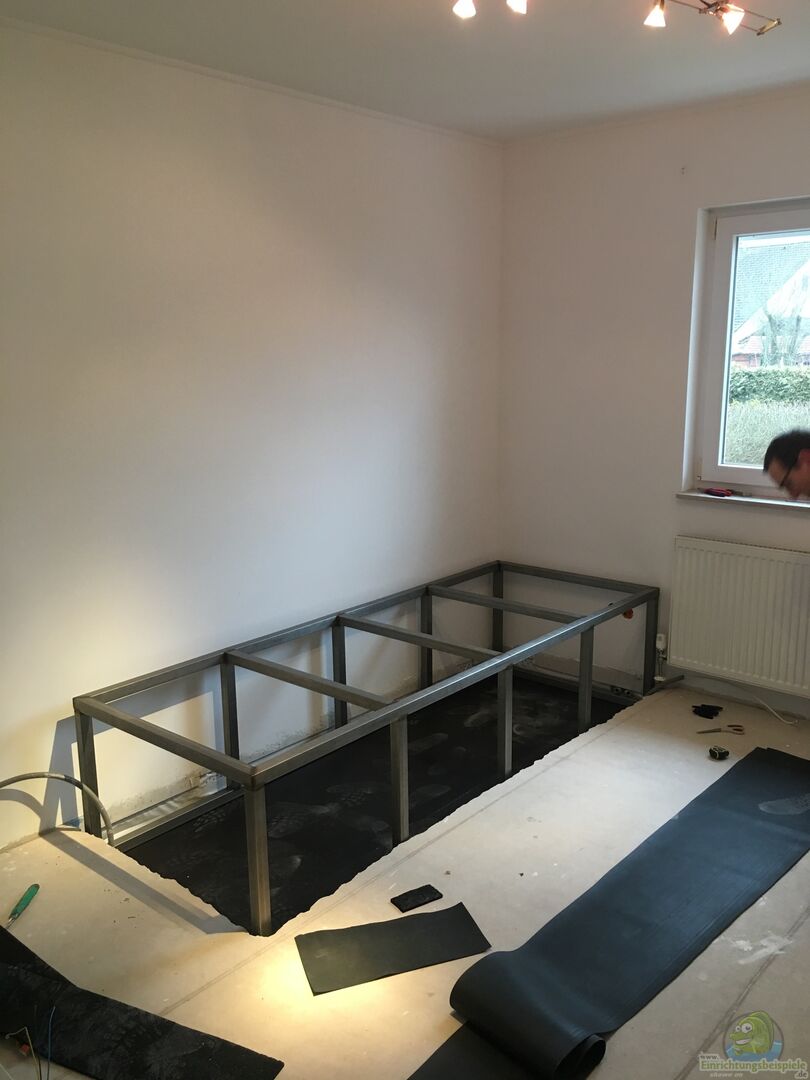 - Unterschrank selbst gebaut aus 40x40 mm Nierosterstahl - Aufbau : Fallschutzmatte - Siebdruckplatte 21mm - Unterschrank - Dachfolie - Siebdruckplatte 21mm - Aquariumunterlagsmatte - Becken - Bohrung im Boden für Wasserwechsel - Mehrkammerinnenfilter mit 4 Kammern über die ganze Tiefe - Becken wurde genau nach meinen Wünschen angefertigt und bis vors Haus geliefert > mit 6 Mann und meiner Ehefrau kam Becken schlie??lich durchs Fenster in den richtigen Raum