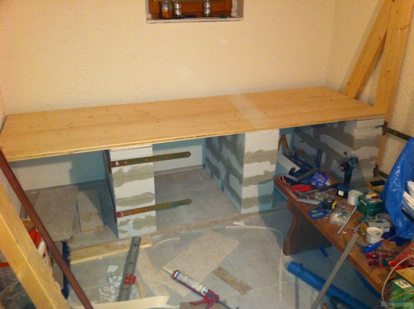 Becken ist aus 12mm Floatglas. 2 teilige Bodenplatte. Sto??verklebt + Sicherheitsnaht. Eingeklebte 3D Rückwand Abdeckung aus 6mm Plexiglasscheiben. Das Aquarium steht im Keller in einem extra Raum, der zum Aquarien - Zimmer umfunktioniert wurde :) Becken wird komplett mit Holz oder wei??em Alublech verkleidet. Links neben dem Becken wird sich dann ein "Technikschrank" befinden, worin die ganze Steuerung, PC, PH- Controller, Co2 Controller usw untergbracht wird [...]