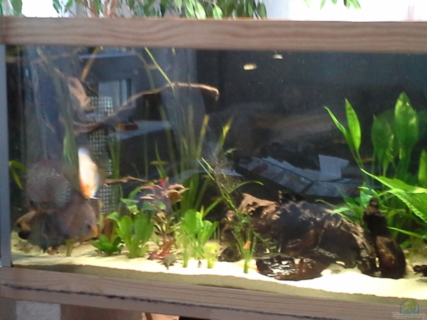 Das aquarium ist marke eigenbau, also ein altes becken komplett auseinadergeholt und neu verkebt, die rueckwand ist aus daemmplatten die mit kunstharz bearbeitet wurde.oben und unten wurden leisten in fichtenholz angebracht und an den ecken wurden aluleisten angeklebt.die obere abdeckung besteht aus plexiglas, die dreimal unterteilt ist.Selbst eingeklebte 3d rueckwand. An den seiten wurden ecken fuer diverse technik eingeklebt. Das becken läuft seit 5.2013 . Einen monat später kam der besatz. Co [...]