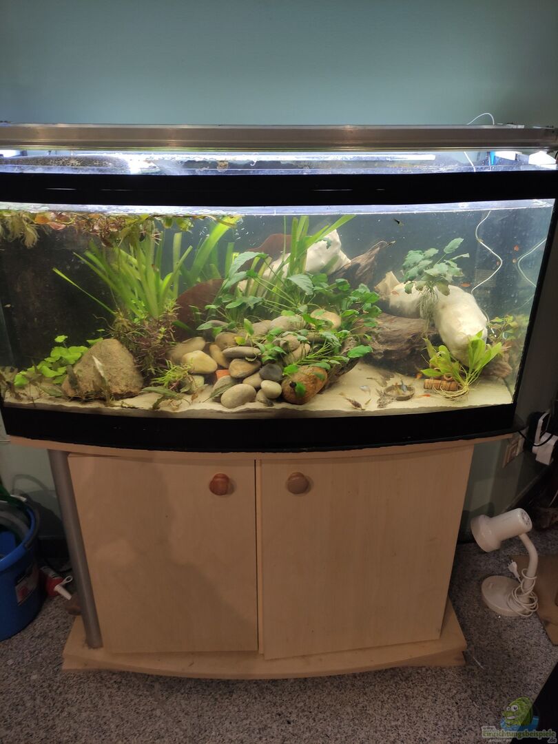Aquael Becken 8 mm Floatglas mit gebogener Frontscheibe Das Becken läuft seit Juli 2018 und wurde zum 14.11.21 komplett umgestaltet. Filtermatte wurde aber nur in Aquarienwasser ausgespült Einige Pflanzen wurden aus dem alten Layout übernommen.