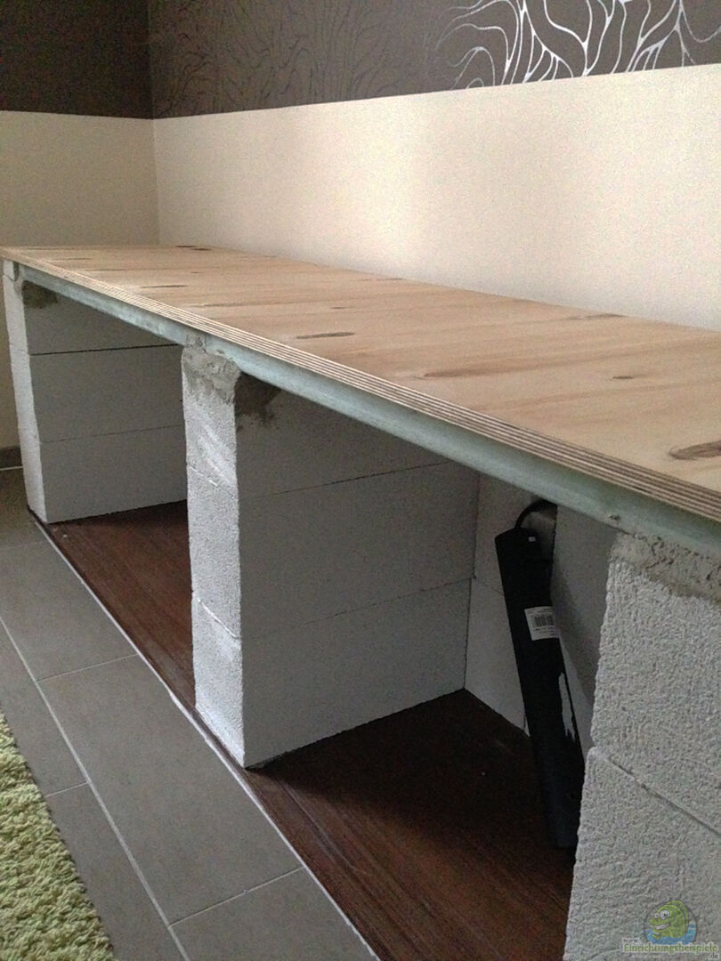 Aquarium - Kristall-Floatglas, 12mm - sto??verklebt - Glaskanten diamantgeschliffen und poliert - Klebenähte sind mit einer Innen-Sicherheitsnaht versehen - 2 Bohrungen (hinten links): 45 mm (Ablauf), 35mm (Zulauf) ??berlaufschacht (Eigenbau) - 10mm Kristall-Floatglas - Abma??e: 150 x 150 x 650mm - von au??en verkleidet mit einer schwarzen PVC Platte (3mm dick) Unterschrank (Eigenbau): - Ytong-Steine in 2 verschiedenen Dicken (600x200x175mm // 600x200x100mm) - Furnierplatte [...]