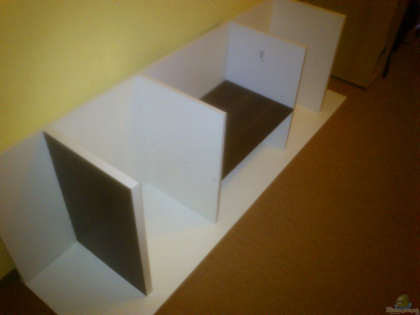 Aquarium ist von Fa. Friedberg, habe ich online ersteigert. Unterschrank ist selbstgebaut, 12mm Möbelplatten, jeweils doppelt gesetzt. In diesem Aqua waren beim Vorbesitzer Schildkröten, die entsprechende Insel wurde rausgetrennt, zum Glück befinden sich keine gro??en Kratzer im Glas.